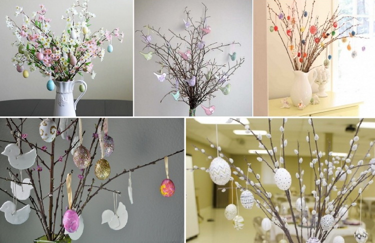 Independently, by Easter, it will turn out to make a festive tree, which, in addition to the symbol of the holiday, will act as a talisman for the family hearth. To create it, you need to make a bouquet of willow branches, decorating them additionally with ribbons, fresh flowers, angel figures, which can be cut out of paper and attached to a long stick.