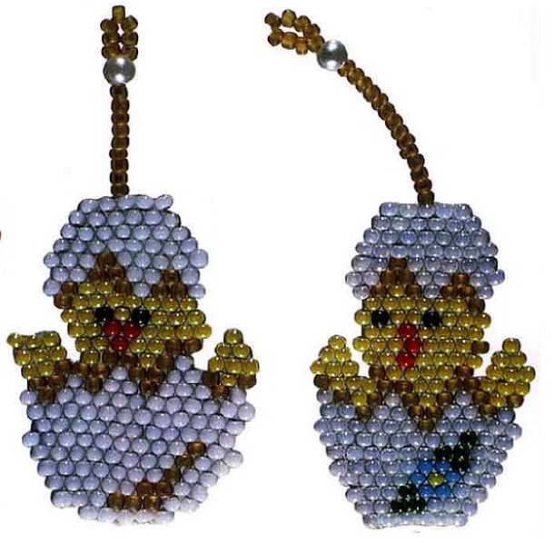 A matching Easter souvenir will be multi-colored key rings made of beads. Such a product can have a different shape, repeating the outlines of the main symbols of Easter. This gift can be used to decorate a bunch of keys in the future or hang a souvenir on a handbag. If you prepare a gift from beads in advance, then it will turn out to embroider a mini-icon or a picture with the symbols of celebration, angels, spring, etc.