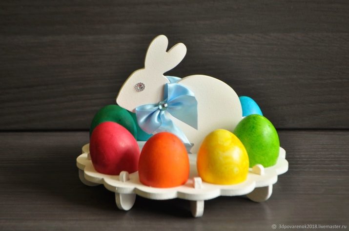 Among the list of ideas for creating a gift with your own hands is worth noting the options for homemade egg coasters. Each one will be designed for one egg, there are a lot of design options - it can be a rabbit, the paws of which will hold the egg or just a multi-colored wrapper, which can be created together with the children. If you wish, you can make a whole egg box decorated in this way. Rabbit patterns can be printed or painted by yourself.