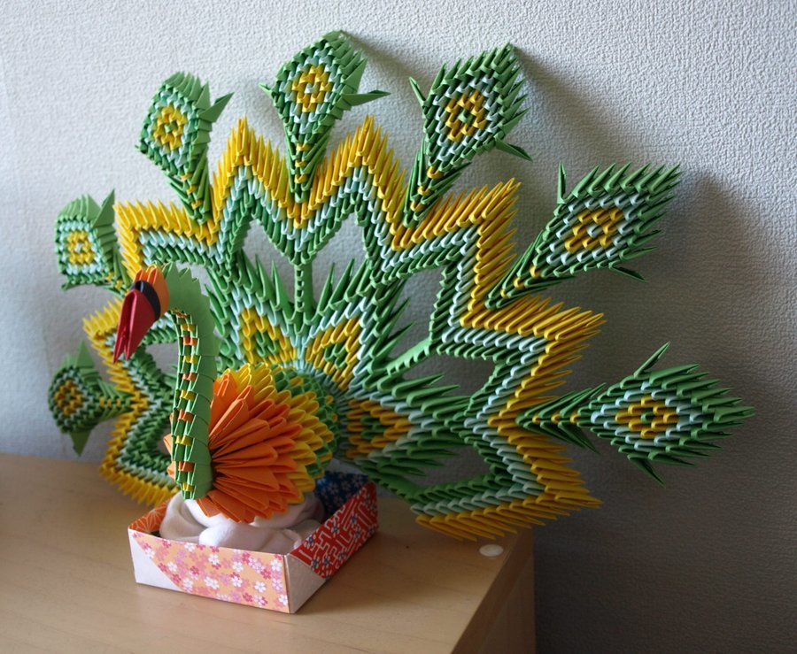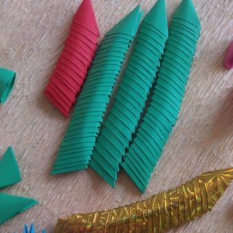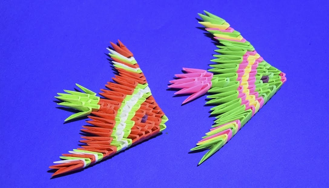 Modules make real works of art: different types of animals and birds, dragons, as well as various boxes and candy boxes. Even without a scheme, you can perform triangular colorful fish, such as in the figure.