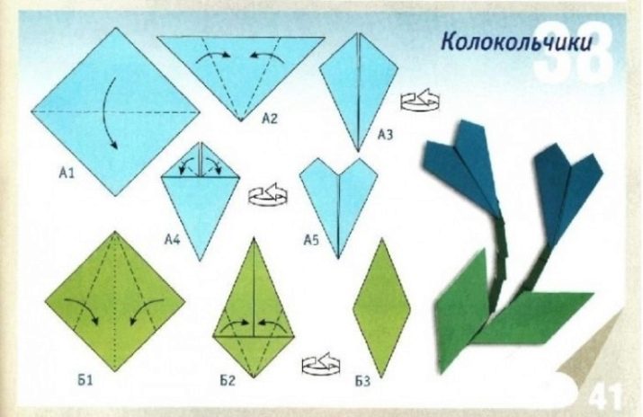 Flowers are one of the most popular origami figures. Paper can be folded and lilies, and roses, and tulips. They can decorate a bag, a postcard or a box with a gift. To comprehend this art is better from simple to complex, so we will show and tell you how to make a cute decoration in the form of a paper bell. Make it completely easy. Just stick with the following algorithm.