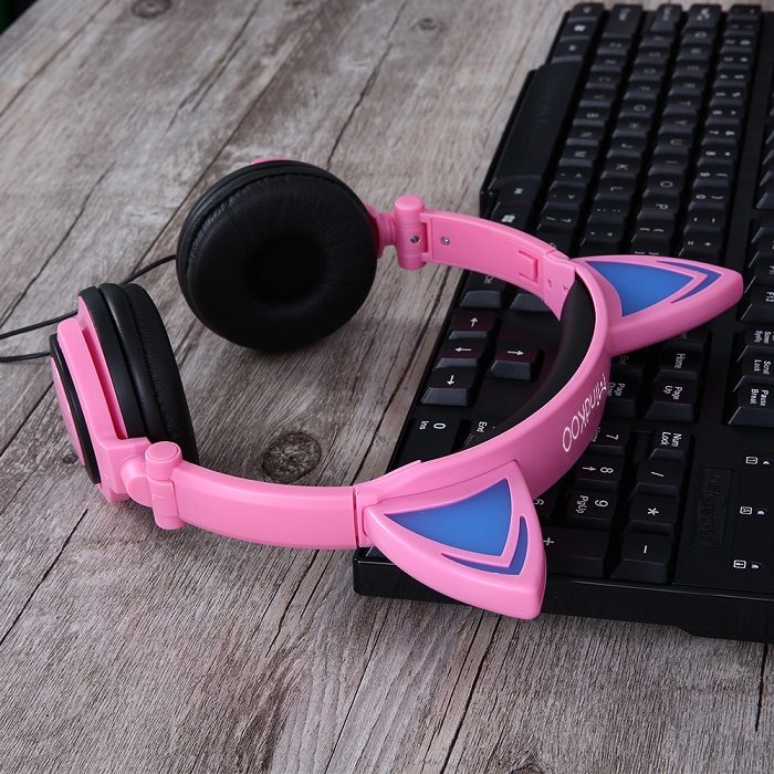 - Cute headphones, complemented by cat ears, are an interesting and creative gift for a child. Such a gift would be especially appropriate for a girl. You can pick up the spectacular headphones-ears "sweet" pink.