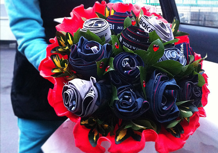 A gift can be accompanied with your own poems and supplemented with a bouquet of flowers or balloons.