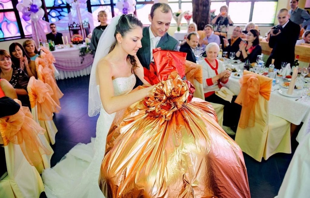 It is often possible to see a young family being given large sums of money, keys to an apartment, a car, family heirlooms or jewelry at the wedding.