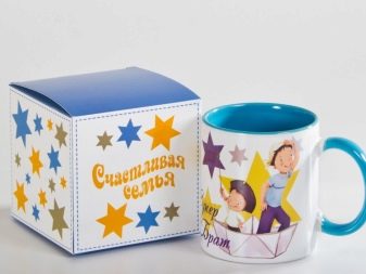 - Cup. Their selection is huge. You can find ready for a specific theme of the holiday or with an inscription and a picture that will emphasize the individuality of the person to whom it will be intended. It is possible to make to order with an interesting phrase, a wish or an aphorism. It is quite reasonable to pack it in a gift box, which will later be useful for storing any small items.