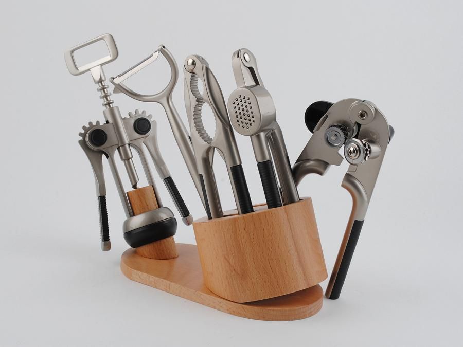 - Bottle Openers. Another version of the kitchen gift, which will be very useful. The kit usually includes: a tin lid opener, a corkscrew, a can opener, a garlic press, a potato peeler and a nutcracker.