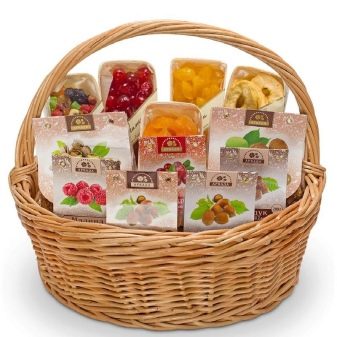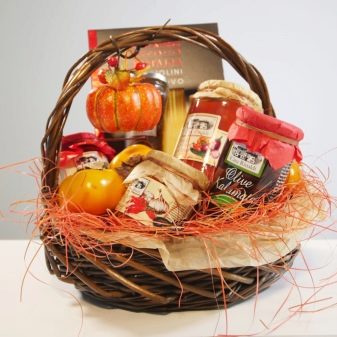 “Edible” baskets make to your taste. Perhaps grandmother or mom is really better to take a team, where there is a little of everything. But if, for example, you bring someone a gift from a trip (to colleagues, for example), you can bring a small mono basket: cheese, tea, a basket of coffee.