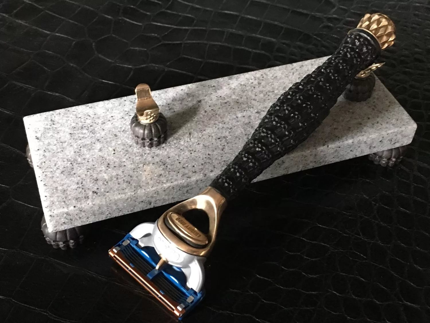 Hand-made razor with inlaid gemstones and precious metals - This is a unique gift that will appeal to every man. As a rule, such products are packed in special cases of precious wood, which can also be applied with a personalized engraving.