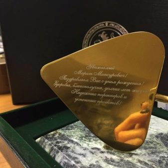A few words must be said about laser engraving. She's becoming popular lately. This method allows you to put an image or an inscription on the product using a laser beam. Such an image has a certain relief or depth. It depends on the power of the laser machine, the properties of the material that can be engraved. The main advantages of this engraving include: