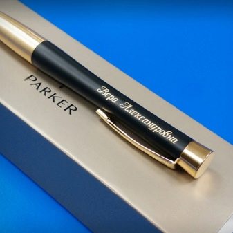 A Parker pen with engraving will please a business person, a business woman will charm you. This accessory will help out at any time and in any situation; it will brilliantly cope with its task. If you make a personal engraving on such a pen, then the excitement is surely guaranteed from the receiving party. A short inscription will look beautiful on the metal case of this product. A harmonious addition to the handle will be a case of beautiful color and good quality.