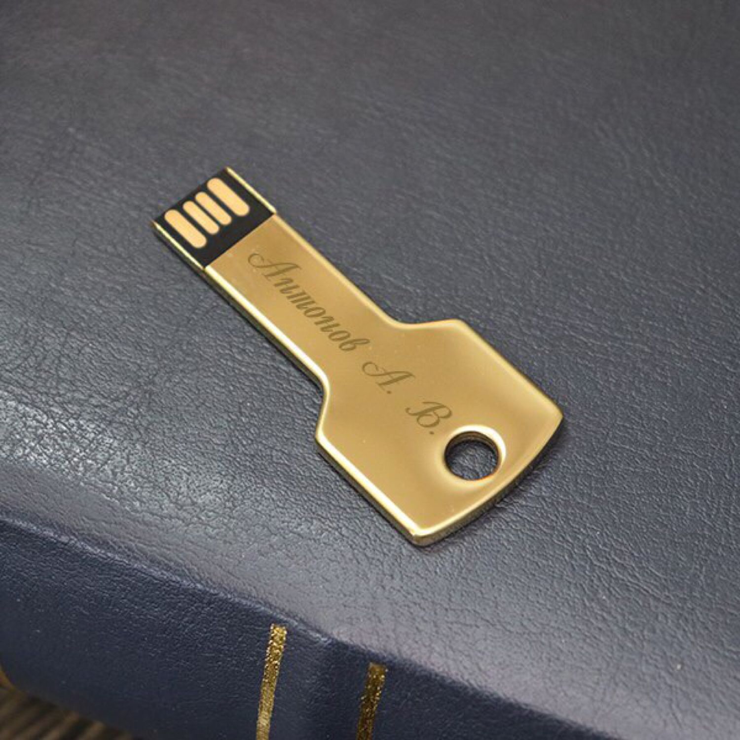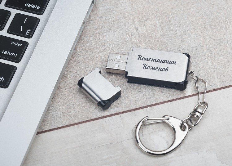 The variety of forms of this gift makes it possible to choose an option for the soul, status and practicality. Engraving will only add grace and delightful looks. An interesting combination of a metal flash drive with engraving and precious stones. Again, this is a great souvenir for businessmen.