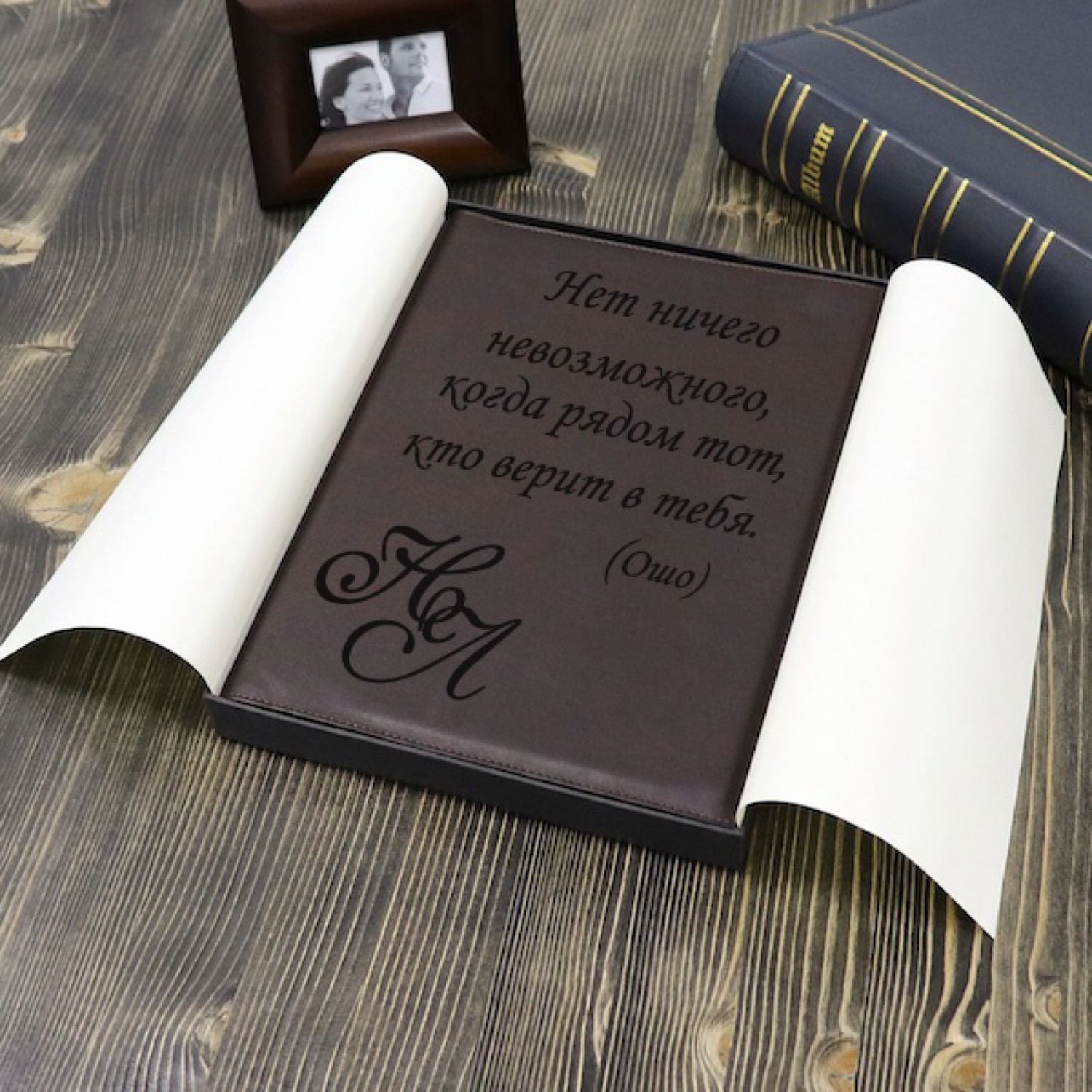This is a universal gift that will be useful to business people and students. In it you can plan, take notes. Engraving makes it possible to make such an attribute original and special. On notebooks, you can write not only the name, but also the qualities for which you want to thank the person. For example, "The Golden Man, Ivan Vasilyevich." If a person is an avid traveler, then you can give a notebook, covered with artificial leather.