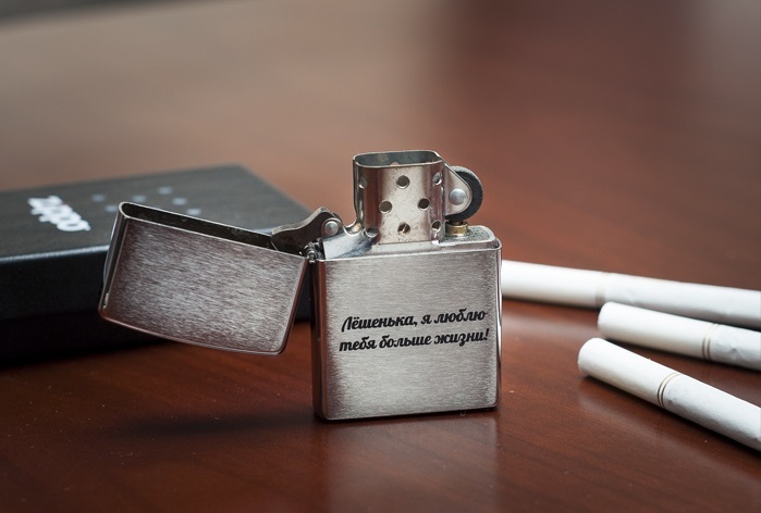 A stylish and practical gift for people who have a habit of smoking will be a lighter. Often used for engraving lighter company Zippo, which is fueled with gasoline. Such a gift of American quality with a personalized inscription a person will never forget or lose. By February 23, as well as by Victory Day, you can donate a lighter in the form of a bullet.