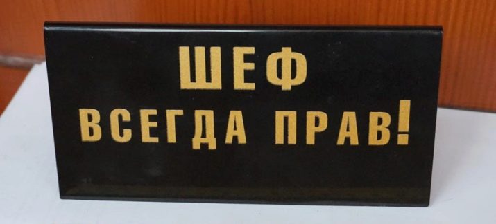As a rule, such jokes always cheer the staff, defusing the atmosphere at any meeting of the team. In the morning, going into the director's office, you can unwittingly smile when your eyes fall on the table with such a sign. Accordingly, the chef will be happy to joke, looking at your location. Such signs fit perfectly into the interior of any office. There are many other names: "Here are my rules", "Today I am angry" and many other interesting jokes.