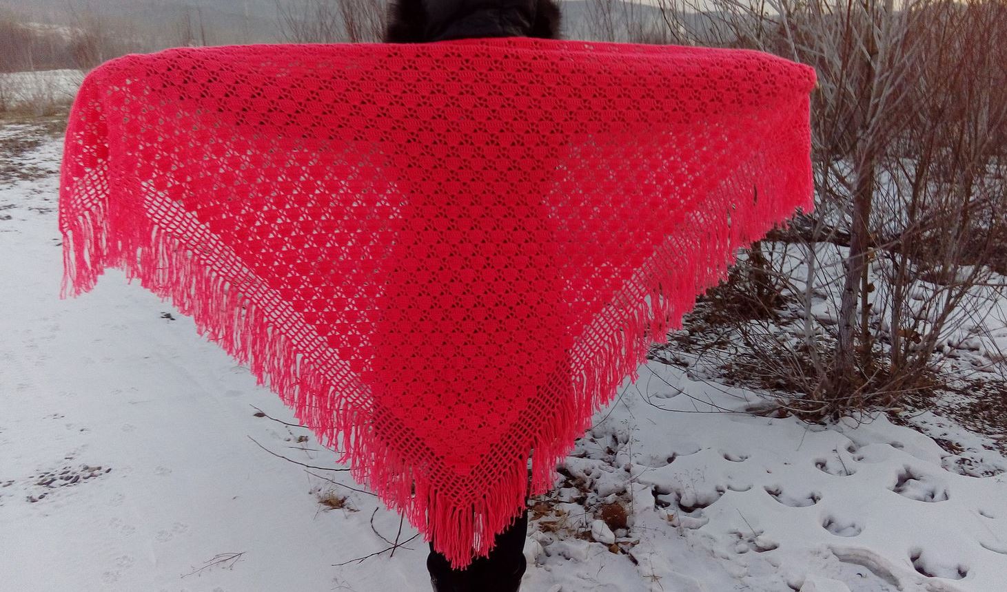 Such a gift is good not only for your beloved grandmother. This is a beautiful decoration that completes the image of a modern woman. An openwork crochet shawl, for example, will be a great addition to a coat. According to the scheme, such a product can be created in a few days while sitting at the TV.