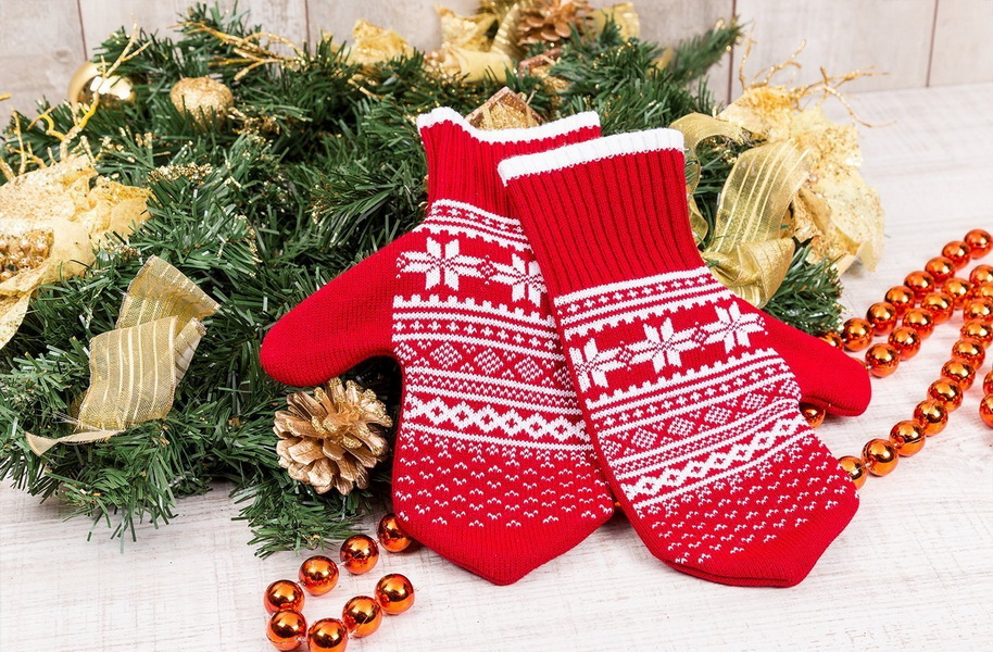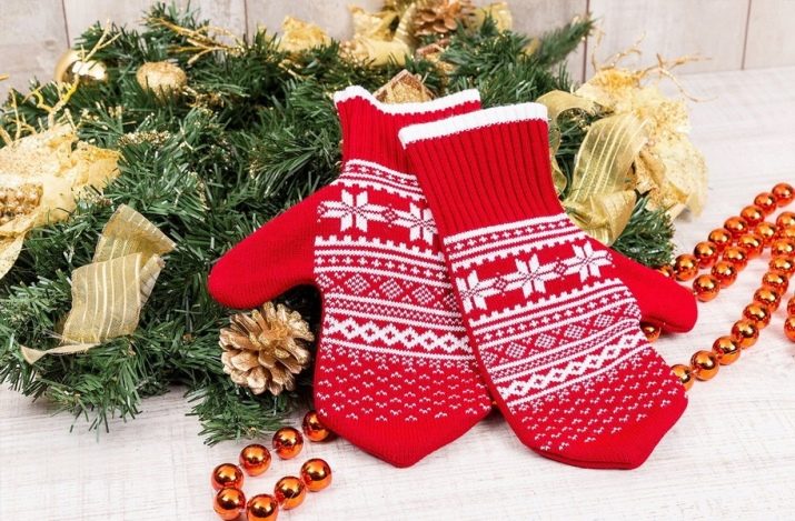 If the size of the future gift coincides with the size of your own hand or hand of another person who can try on a knitted product in the course of its creation, you can be sure that it will fit the person who is planning a holiday. Gloves knit a little harder, because you have to knit each finger separately, but the mittens do not constitute a labor in their implementation. You can make such things in one tone with a relief pattern or create a jacquard pattern on them.