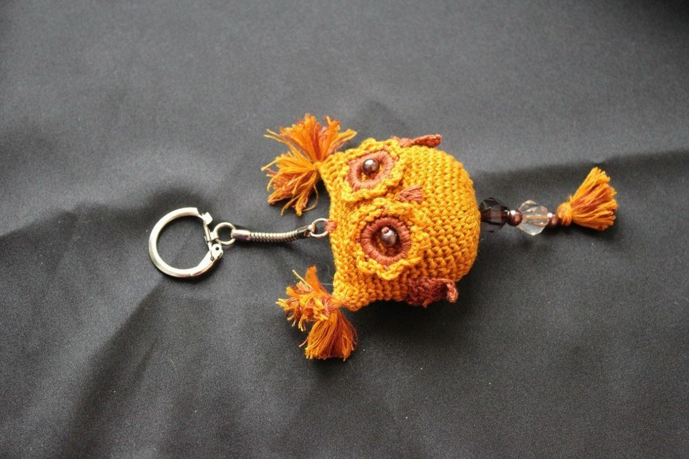 Crocheted subject of such a plan can be of any shape. Many crocheted key fobs are the same toys, only very small in size. At the same time they allow you to quickly find the keys in a pile of other things.