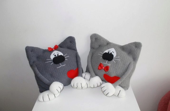 Knitted things of this kind look elegant and do not get lost among other additions to the sofa. The knitted part is only a cover. To make the product look attractive, it is important to consider its design taking into account the shape of the pillow itself. Here come to the aid of a variety of patterns that can be knitted with needles, as well as the color of the thread, combined in different ways.