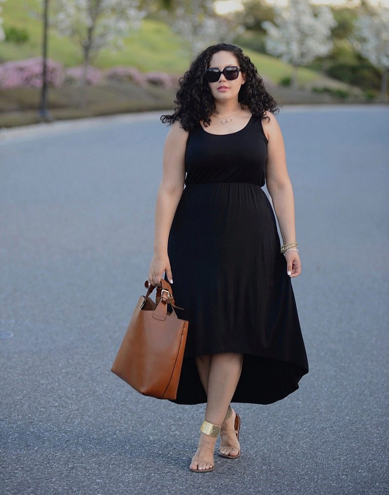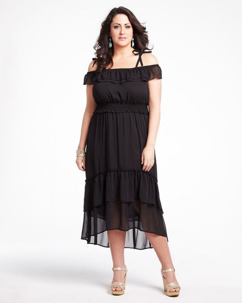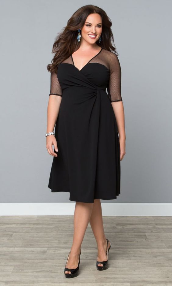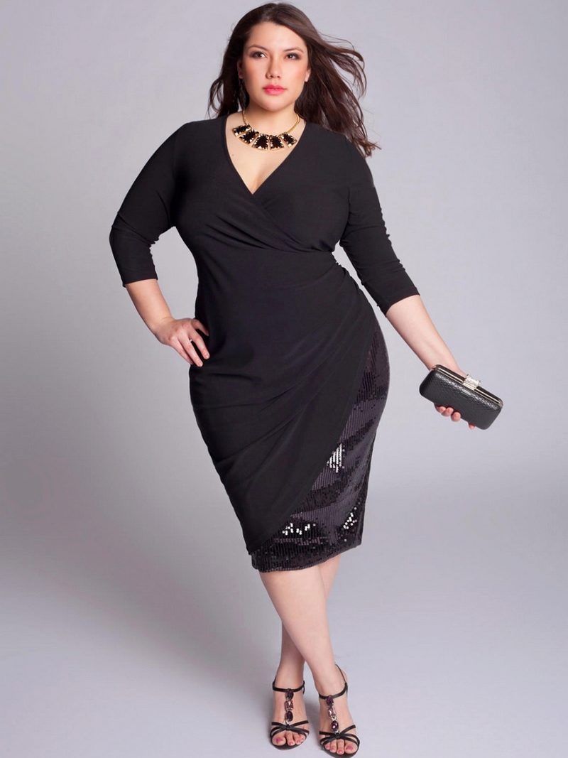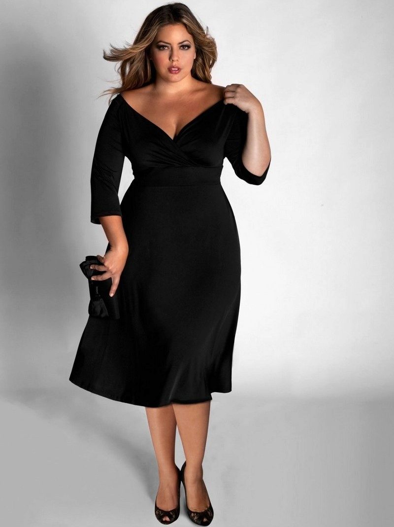 A special love for black dresses is fed by plump girls and women. Several centuries of fashion history have shown us that black is the best suited to the ladies of this build, as it is able to visually reduce the volume. That is why, going to a celebration, pyshechki invariably wear a black dress.