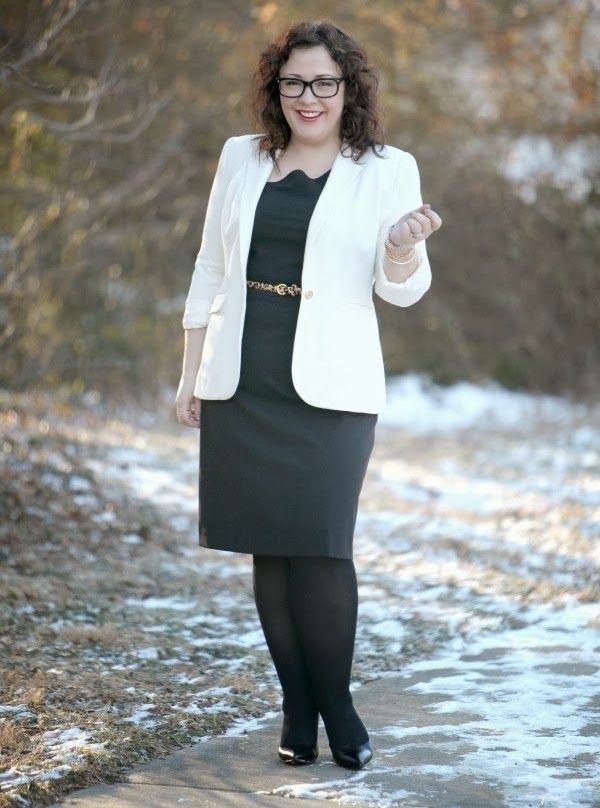 - Sheath dress and a strict jacket is one of the most successful business combinations. For work it is better to choose an elongated model that covers your knees (especially if you are worried about full legs). A shallow round neckline, short sleeve - all together it looks simple and elegant.