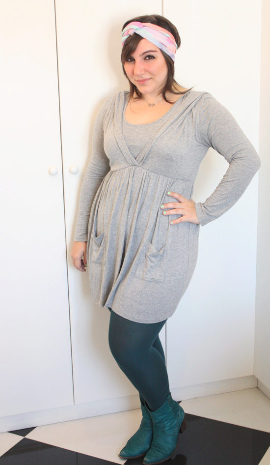 With a knitted dress you can wear almost anything, the main thing is to avoid details that will gather material in the folds, for example, you should not wear a top or a shirt under a dress made of knitwear.