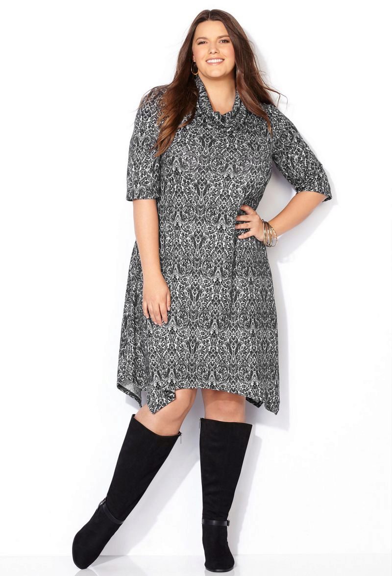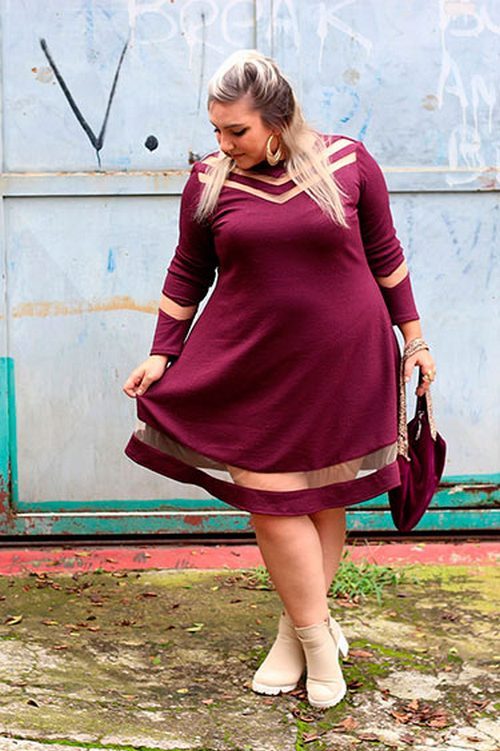 - Chubby girls better choose dresses from thick knitwear, as this fabric will be less wrinkle. Do not forget about the corrective underwear - with its help you can minimize visible figure flaws.