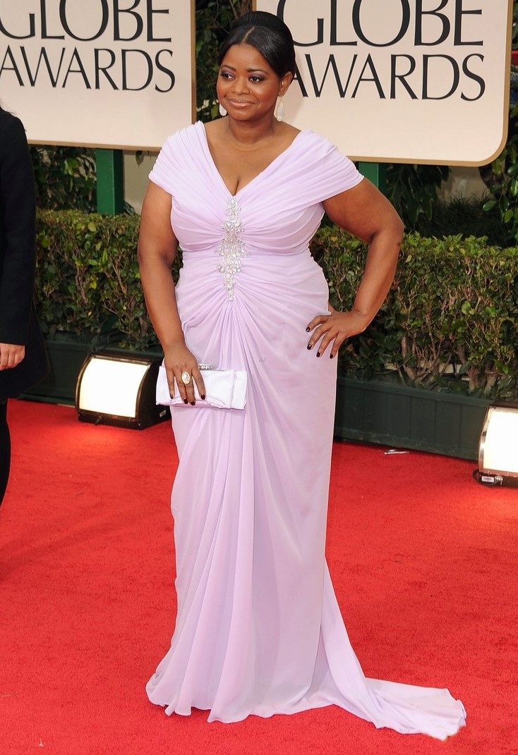Atlas is a fabric also from the category of "forbidden" for corpulent beauties. The glossy surface of this fabric attracts attention not to the dress, but to the peculiarities of the figure, therefore, if there are any flaws in shiny dresses, it is better to refuse. In addition, satin dresses visually make the figure more voluminous, and owners of luxurious forms do not need it at all.