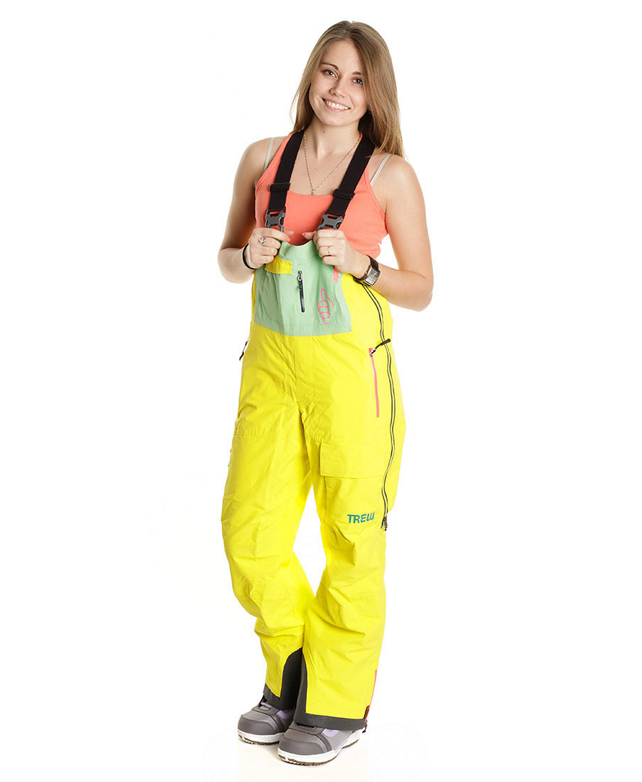 A bright semi-overalls for snowboarding - a charge of positive mood on the background of snow-white snowdrifts! Sunny color does not allow to get lost among the crowd of snowboarders, and a good free cut does not hinder movement. Lightning that runs to the knee performs two functions - utilitarian, allowing you to change clothes aesthetically and aesthetically, visually making the figure slimmer.