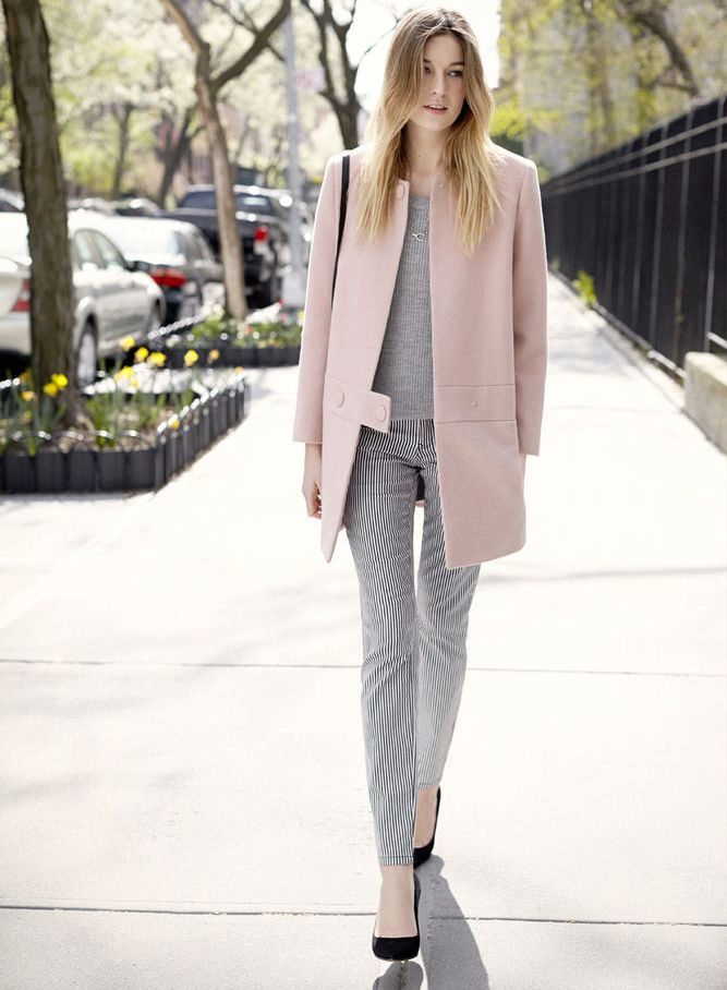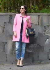 Pink is a bright shade, so outerwear will be the main focus of the whole bow, which means other things should support it, and not enter into disharmony. As for length, the main thing is to ensure that the edges of shirts, blouses, sweaters do not look out from under the short coat.