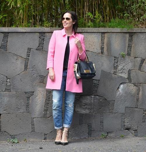 To create a casual style, you should choose jeans that are preferably tight and not loose, although flared jeans or boyfriends are suitable for fitted models. Especially harmoniously look blue and light shades in combination with pink outerwear.