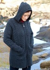 Knitted Coat suitable for a fairly warm autumn. The length varies from the knee and slightly higher. Decorated with various types of knitting - voluminous, braids, rhombuses. Buttoned or buttoned, or just belted.