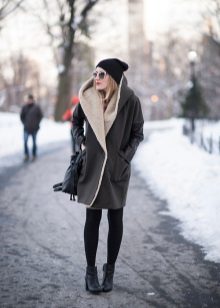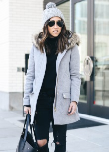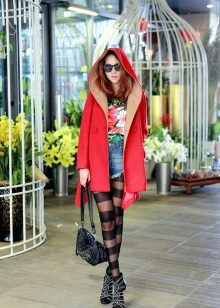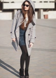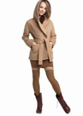 - A short coat from a coat, first of all, is different in length. The short coat has a length to mid-thigh. Therefore, it is important to respect the proportions in the formation of the entire image. Picking up the wrong clothes and shoes, you can easily break the balance between the bottom and the top. So before buying it is worth trying on a short coat with trousers, and with a skirt, with shoes on a heel, and with a flat sole.
