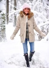 For heat-loving women, designers began to complement the short coat with padding polyester. The thing on a synthetic winterizer differs in fine heat-insulating properties, it is allowed to be carried up to the winter.