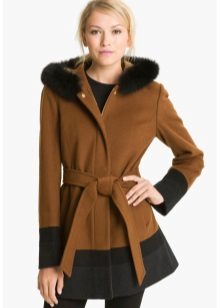 Short coat made of leather with fur. Of course, this model looks more like an elongated jacket. The fur is usually turned off the collar, hood, cuffs, edge of the product. Any furs are allowed to use, the mink, astrakhan, raccoon looks beautiful. In such a short coat will not only be warm, cozy, it also looks expensive and stylish.