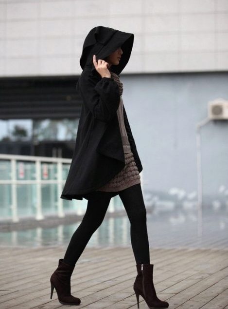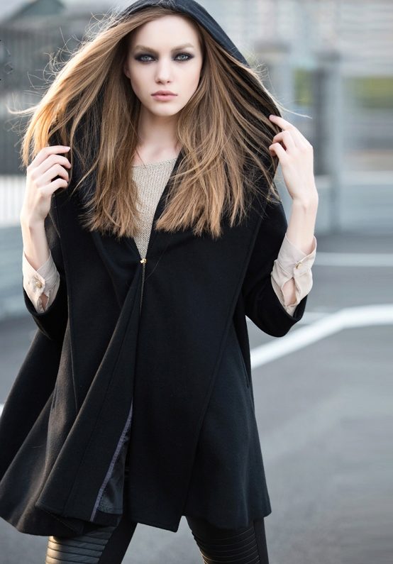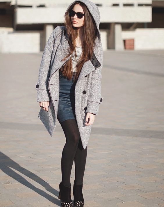 A short coat with a hood is a great option for cool weather. It is comfortable and functional, will add femininity and elegance to the image. Like a jacket, a short coat will not restrict freedom of movement, will not constrain its cut, but it will provide a stylish look.