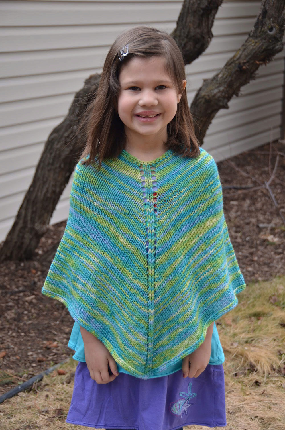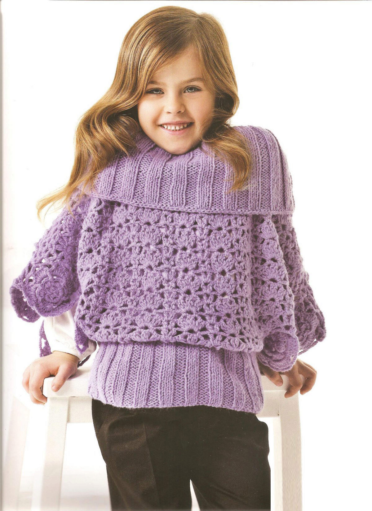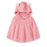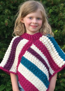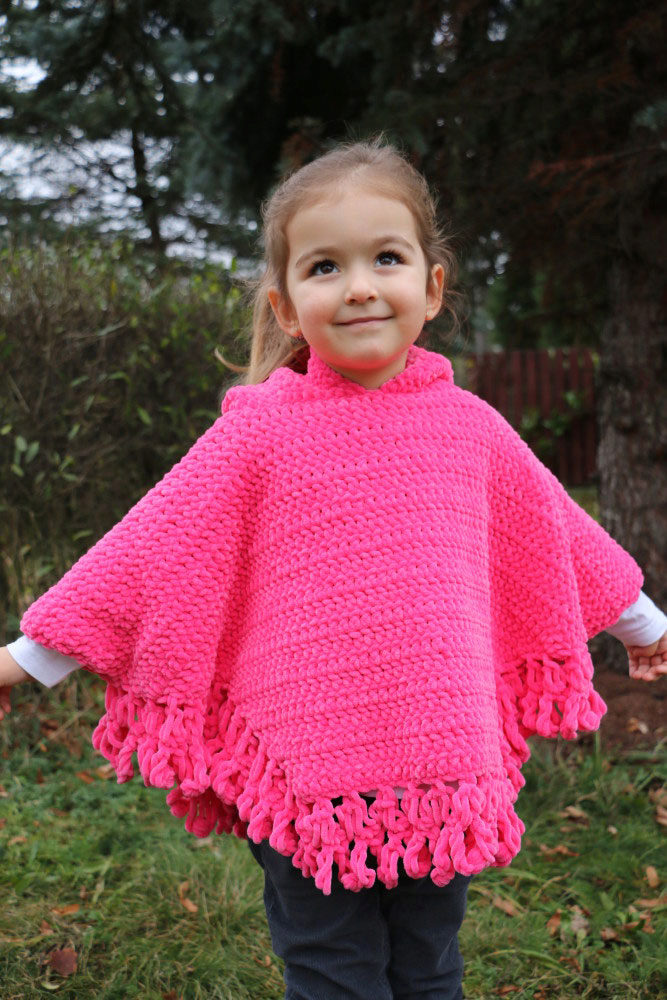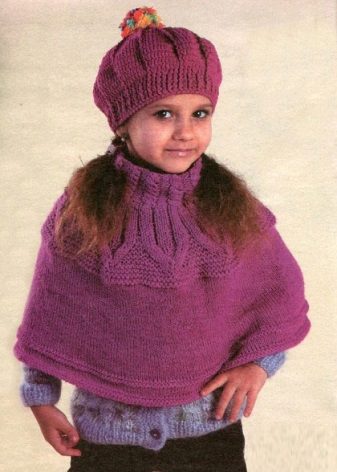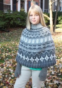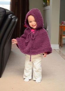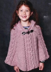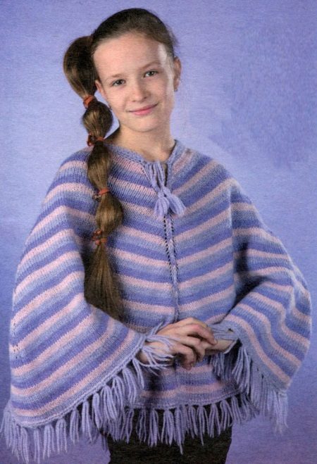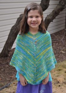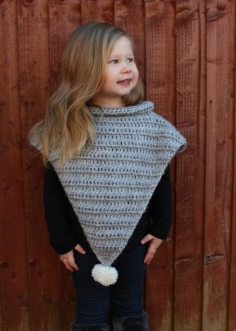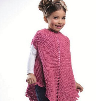 As for colors, girls' ponchos are often made in delicate colors: pink, lilac, beige. Multi-color melange variants look original. You can also play on contrasts. Knitted ponchos with a print (flower, fashionable cage, peas, images of cartoon characters) attract attention.