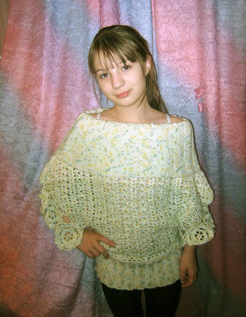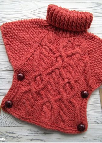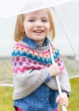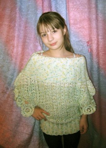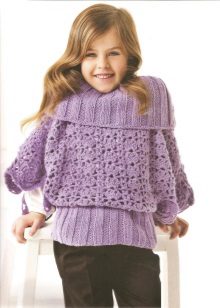 The children's model should be made in the shape of a sweater or pullover (with a raglan neck and, as a rule, a very beautiful yoke). Such a thing is not as hot as traditional models of sweaters, and the free form allows the skin of the girl to breathe freely.