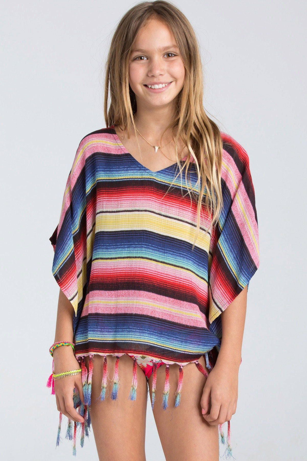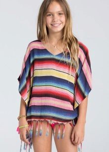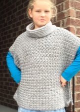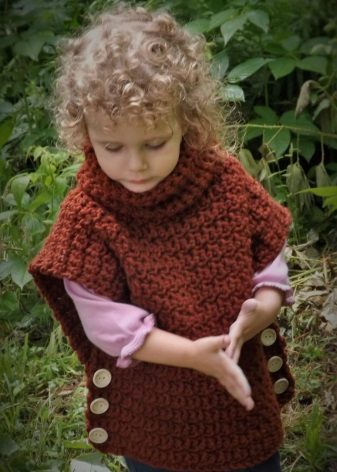 A poncho for a girl can be of any length, the best option being the one that covers the upper part of the hips. Styles also delight their diversity. The main feature of the classic poncho is the absence of sleeves. In accordance with this popular such children's thing as a poncho sleeveless jacket or a vest with buttons or zippers.