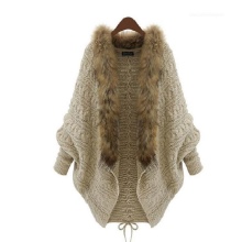 Another stylish look is a poncho-sleeveless jacket with a bright pink collar-resistant knit. The highlight of the model is large interlacing braids and decor in the form of large black buttons. The poncho is intelligently complemented with trendy gray pants with pockets on the thighs, moccasins of a lighter shade of gray (again, a win-win combination of gray with pink) and gloves of the same color. A bag of a quieter shade of pink and the same bezel are also suitable for the original sleeveless jacket.