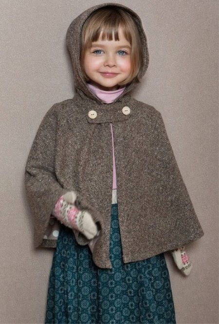 The current model for the fall is a coat or jacket in the form of an original cape. Such children's models are usually equipped with a hood, which makes them more practical and warm.