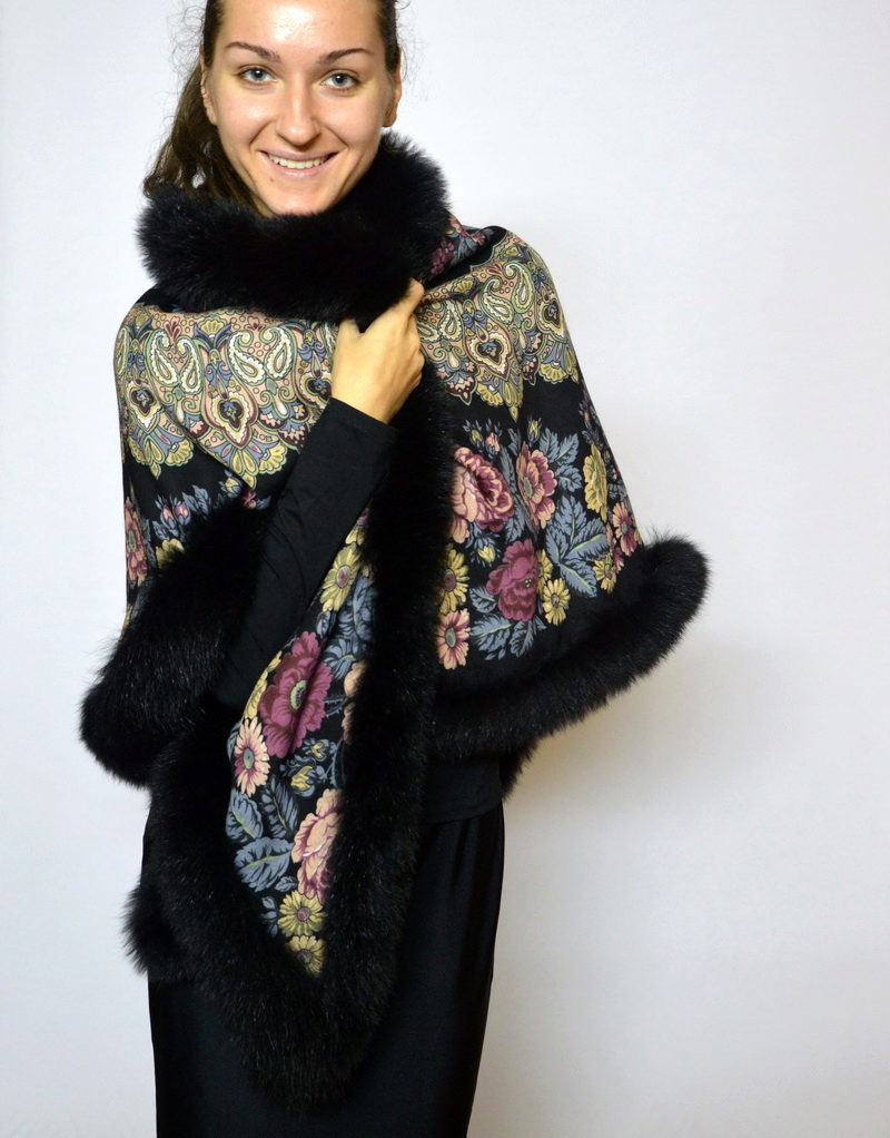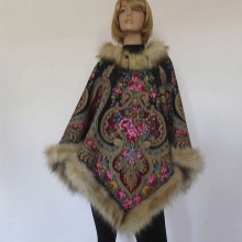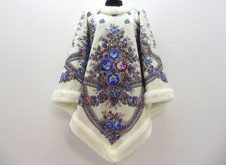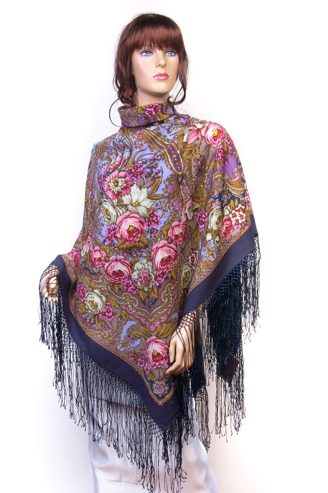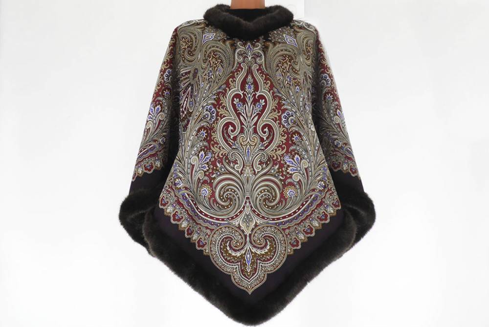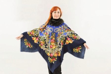Ponchos from Pavloposad shawls are in great demand among women who want to look original. Such outerwear will fit any shape. A simple cut opens up complete freedom of movement, and the stunning Russian-style design will not leave anyone indifferent.