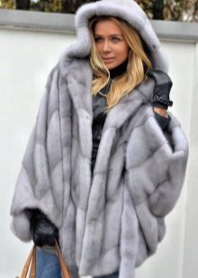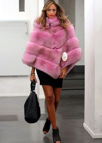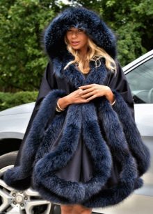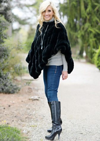 A poncho can be made not only from pure fur, but also in its combination with lighter materials, for example, knitwear or knitted fabric.