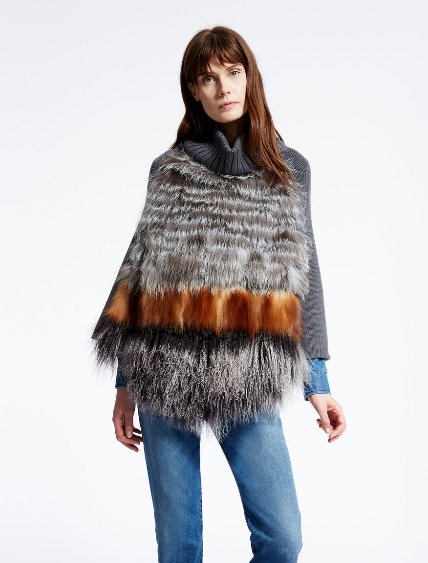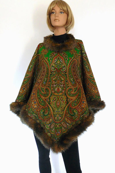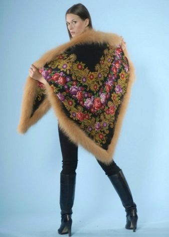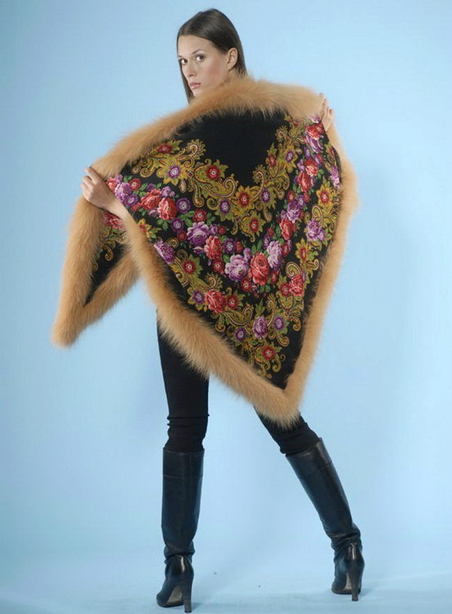 Another fashionable trend is still the compatibility of materials with different textures. It can be a poncho made from leather and fur, from fur and knitwear, or even from Pavloposad shawls and fur. Fur can be used as the main material (such models are more suitable for the coldest time of the year) or as a decor. A poncho trimmed with silver fox or sable fur will add a touch of charm to any party.