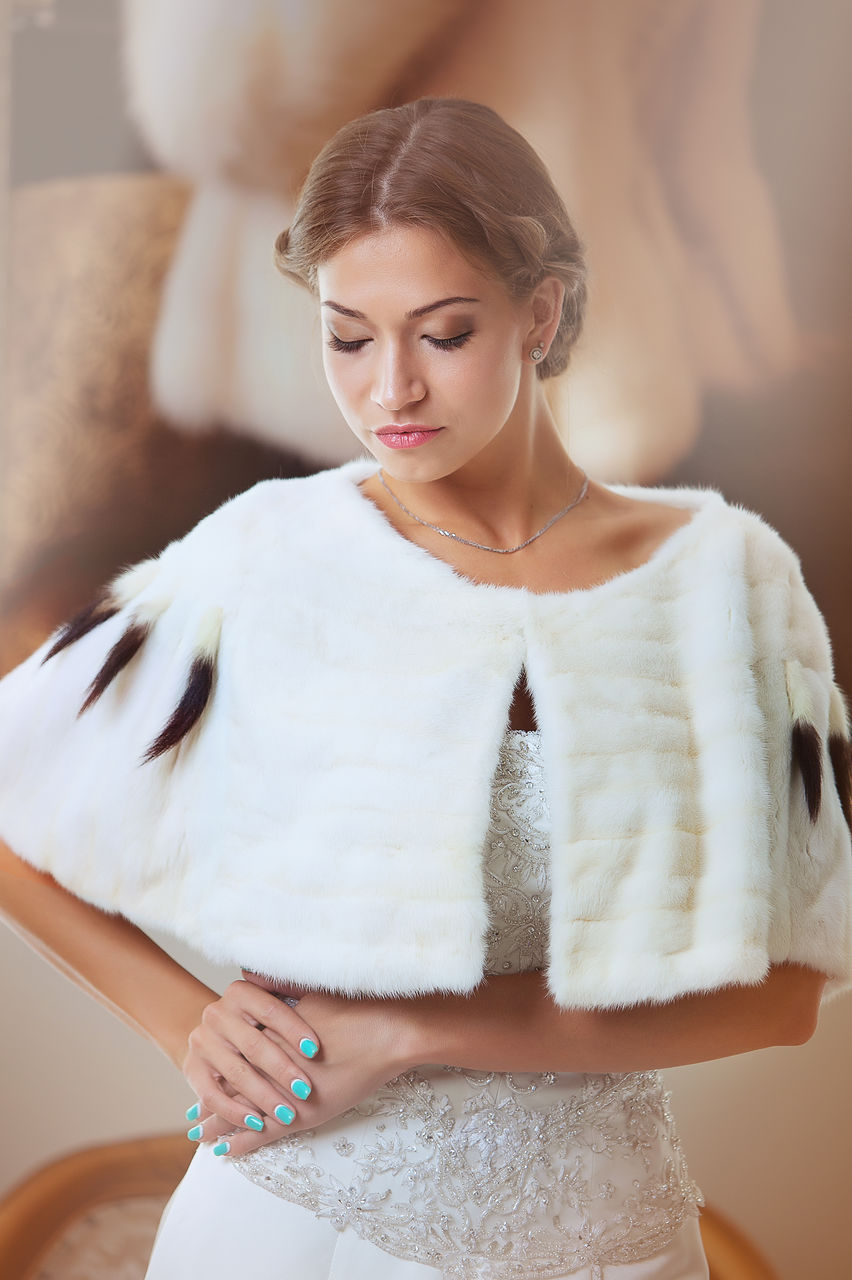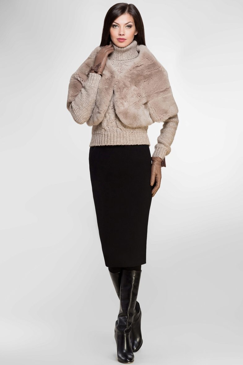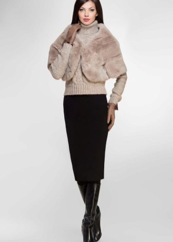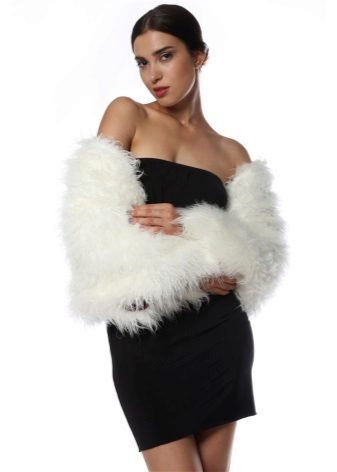 Flying lush cape only covers the shoulders, leaving the waist open. Such a model can be worn not only as a supplement to an elegant dress, but also in everyday life. Bolero of lynx or fox - looks great with classic trousers or a strict sheath dress.