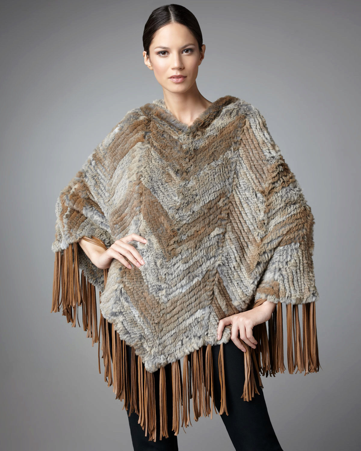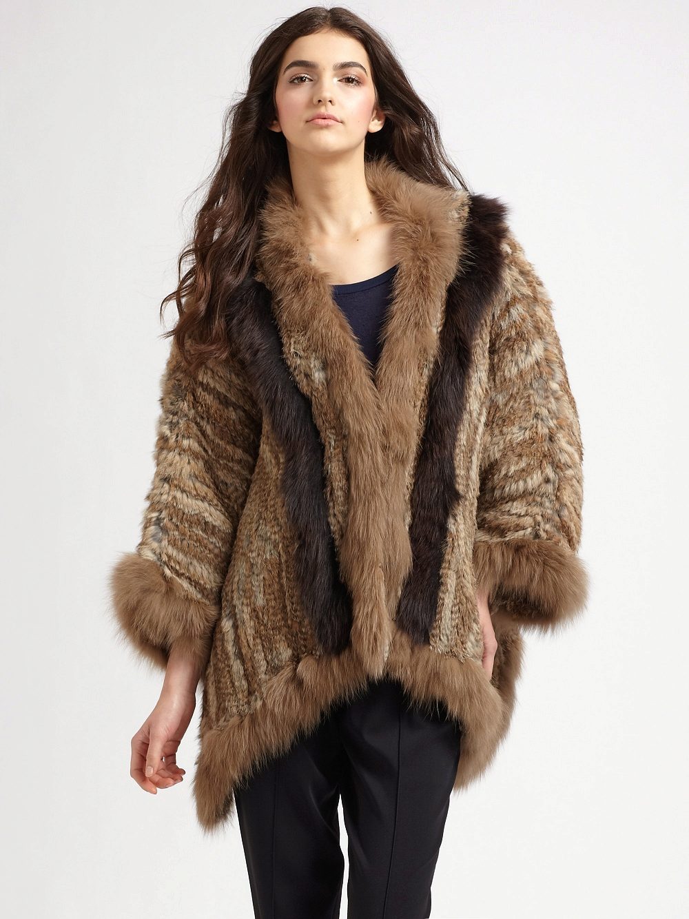 Lovers of natural fur can choose any model they like from mink, arctic fox, silver fox, fox, rabbit, etc. Such models always look expensive, elegant and noble. In addition, a natural fur poncho will warm in cold weather much better than a faux fur model.
