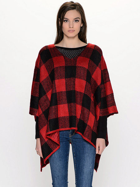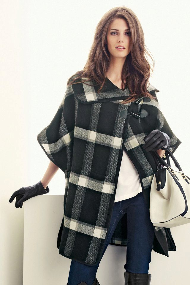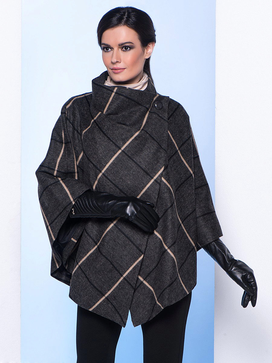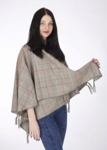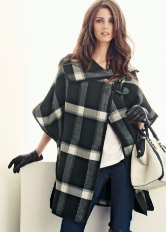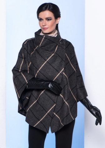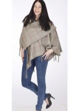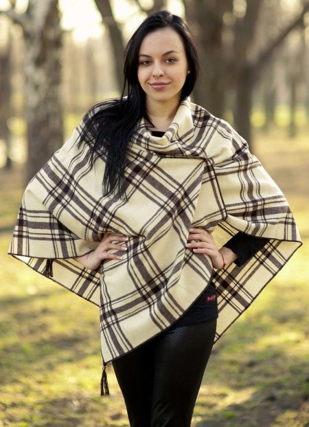 - The cage has not lost its popularity for several seasons already, which means that an ivory-colored poncho-cape in a large dark cage will be a hit at any time of the year. Such a product can be combined with both casual and sportswear, creating a variety of stylish images.