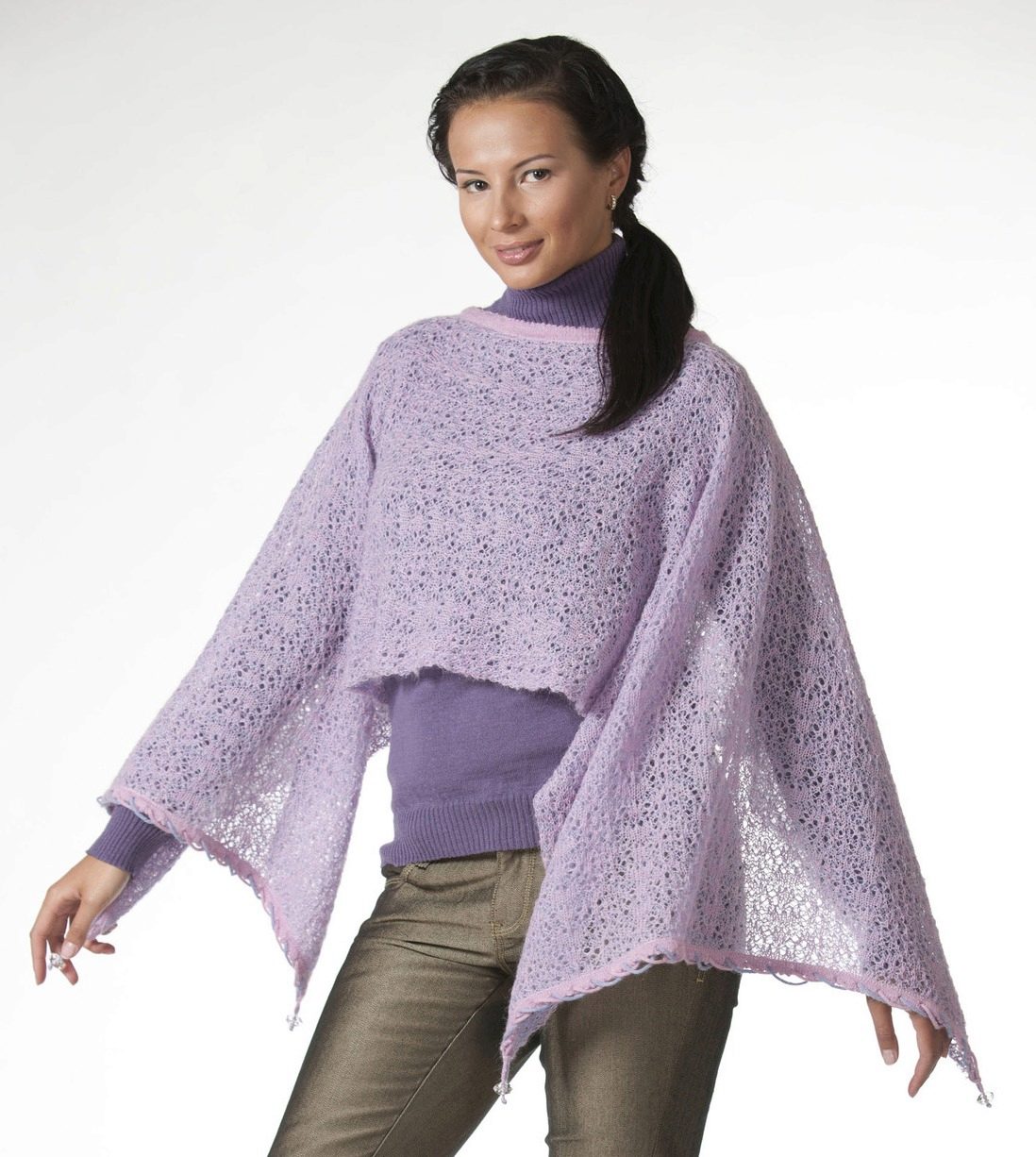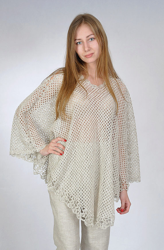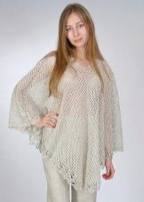 Poncho Drape it looks very gentle and beautiful, is made of natural yarn, has a knitting openwork, therefore it is perfect as an elegant addition to the image.