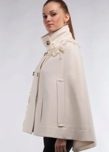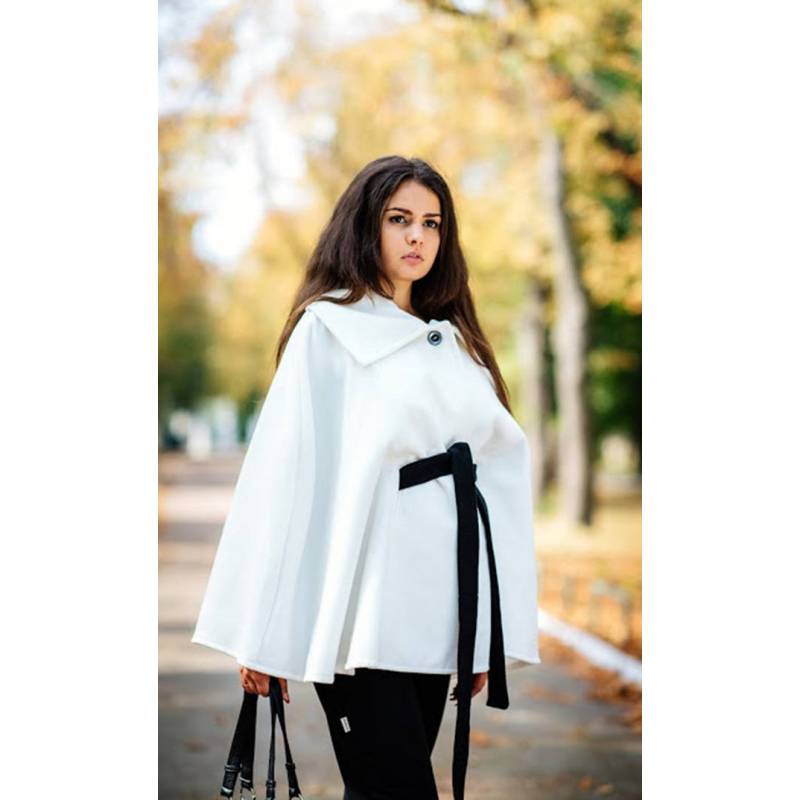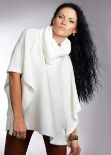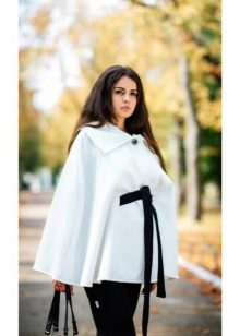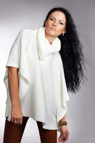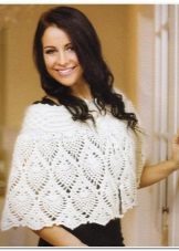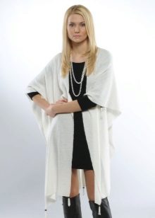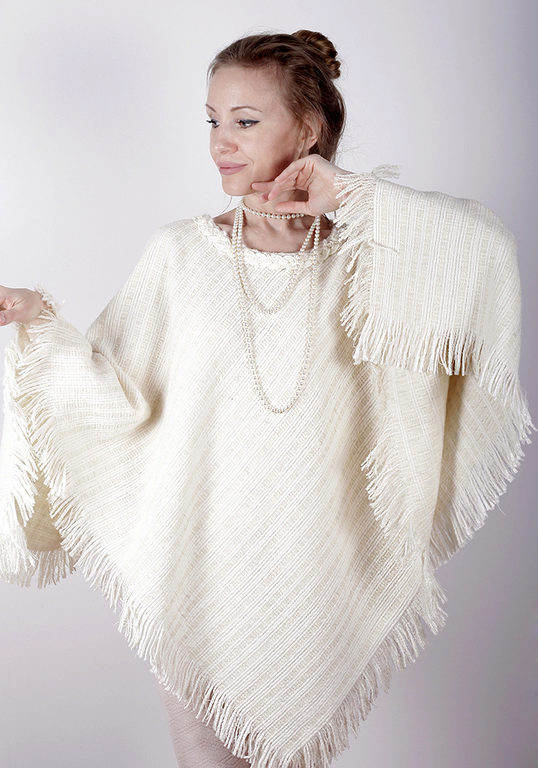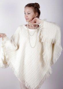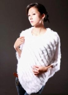 White poncho-cape is perfect for dark-skinned owners of dark hair, because blondes can "fade" and get lost on the background of snow-white product.
