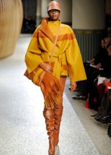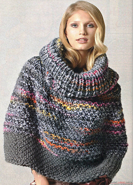 Girls with a non-standard figure and problems of completeness can also afford a poncho-cape, which will not only hide the shortcomings, but also make a favorable emphasis on the merits.