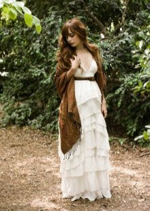 As already mentioned, as a wedding option is often used fur ponchos, but not only. Lace Poncho Capeand also a product made of ostrich fluff or just a thin openwork fabric will be an excellent option for such a solemn day.